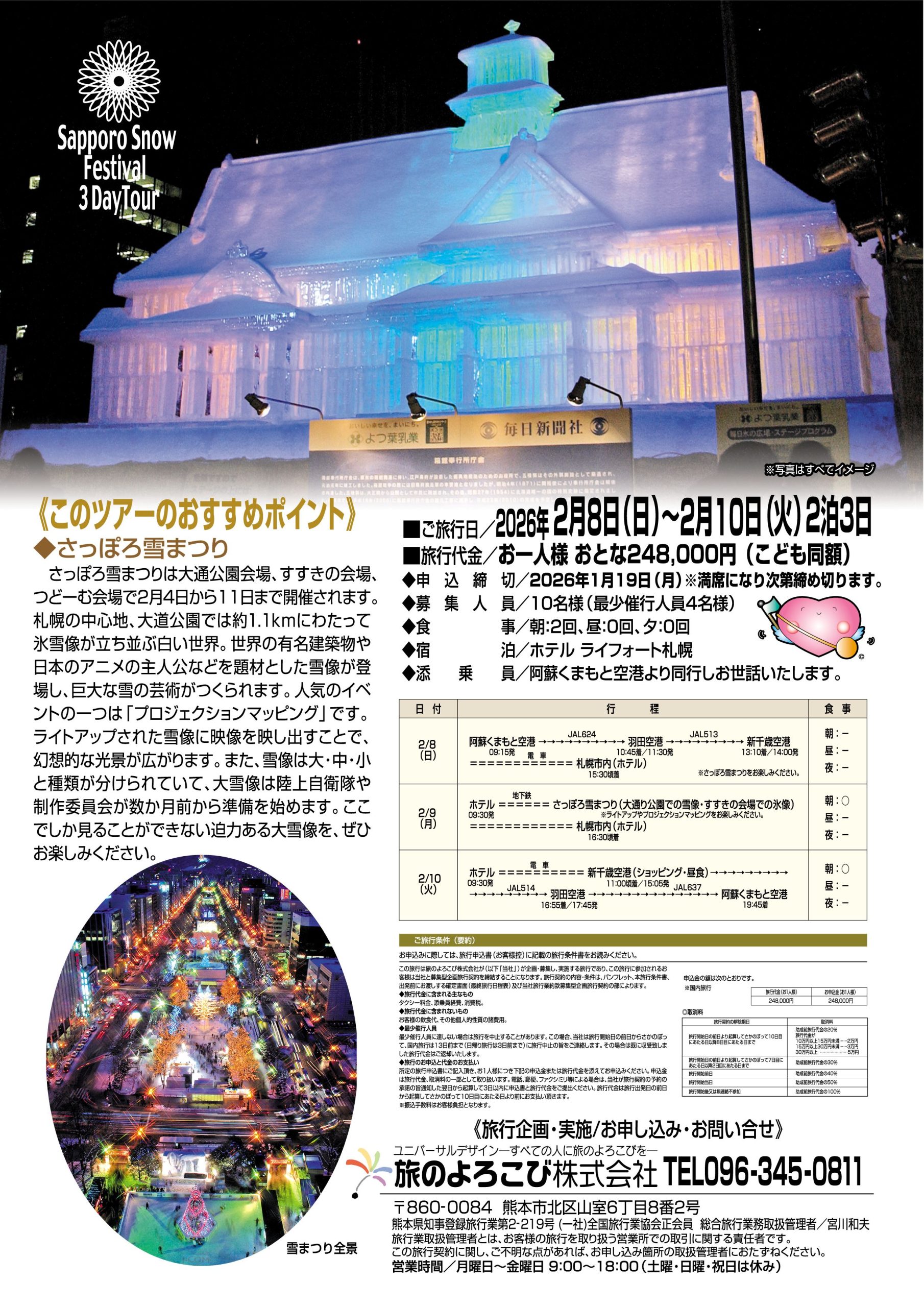 ◆募集中! さっぽろ雪まつり3日間の旅 UDツアー