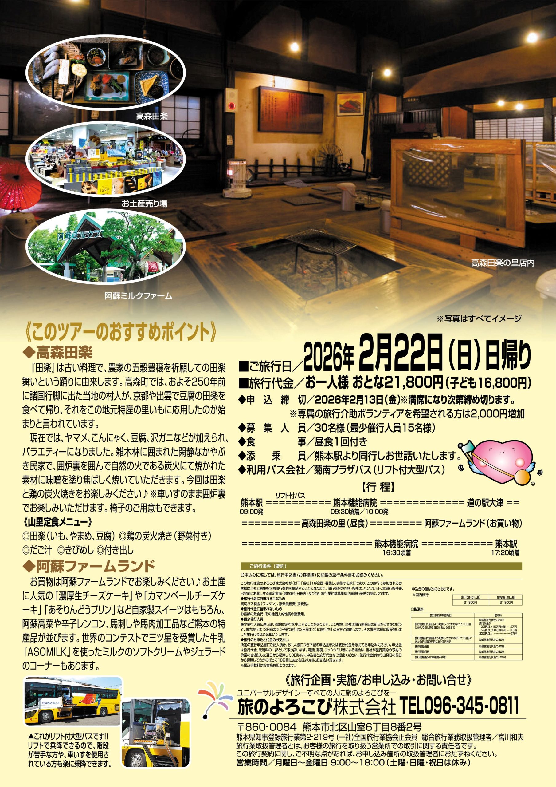 ◆募集中! かやぶき民家で高森田楽ランチ UDツアー